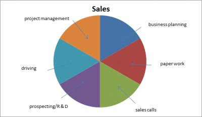 Looking at the pie chart, you can see 6 portions that are representative of activities that most sales people spend